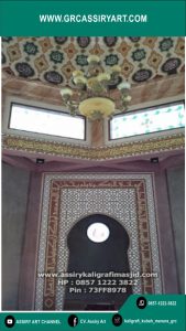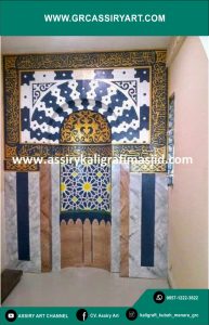 Manfaat dari kaligrafi mihrab masjid ini dapat menambah nuansa islami dan juga semakin memperindah bagian mihrab masjid dengan ayat-ayat suci Al-Quran. Kaligrafi ini dapat dipasang pada bagian samping-samping mihrab atau pengimaman pada masjid, ataupun dibuat pada bagian atas mihrab. Selanjutnya, ornamen dekorasi dalam pola motif Islami akan semakin membuat penampilan mihrab semakin indah. Percayakan pembuatan kaligrafi mihrab masjid pada CV Assiry Art. Kami akan membantu Anda mendesain dan menentukan warna, ukuran, dan pola sesuai keinginan Anda. Segera hubungi nomor atau datang langsung ke tempat kami.